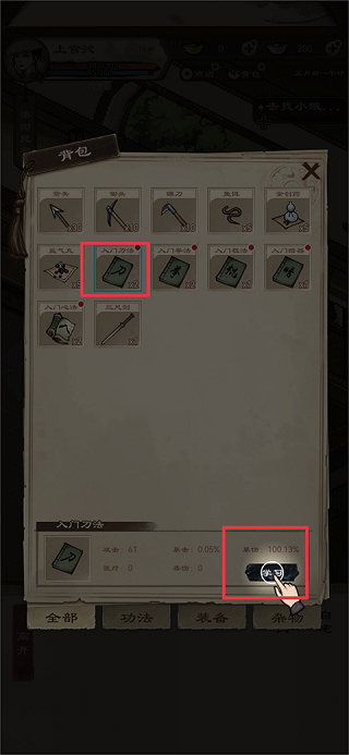 4、获得的心法会放在背包中,选择一个新法并点击学习即可提升战斗力,暴击,医疗等