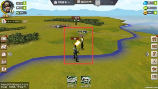 二、提升部队实力:1、军事基地和兵工厂等级将影响能否建造新的兵种,军事基地用于组建部队,而兵工厂则用于建造组建部队所需的兵器及装备,在前期快速提升这两个建筑的等级,并尽快组建机动部队,将会有效帮助统帅扩大优势。
